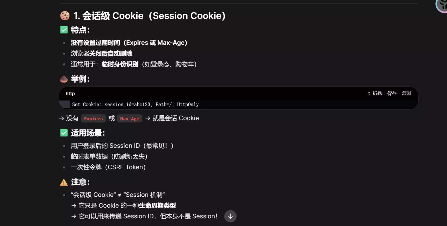 Cookie是存储在用户浏览器端的一个小型数据文件,用于跟踪和保护用户的状态信息。 主要用于保持用户的登录状态,跟踪用户行为,存储用户偏好等。