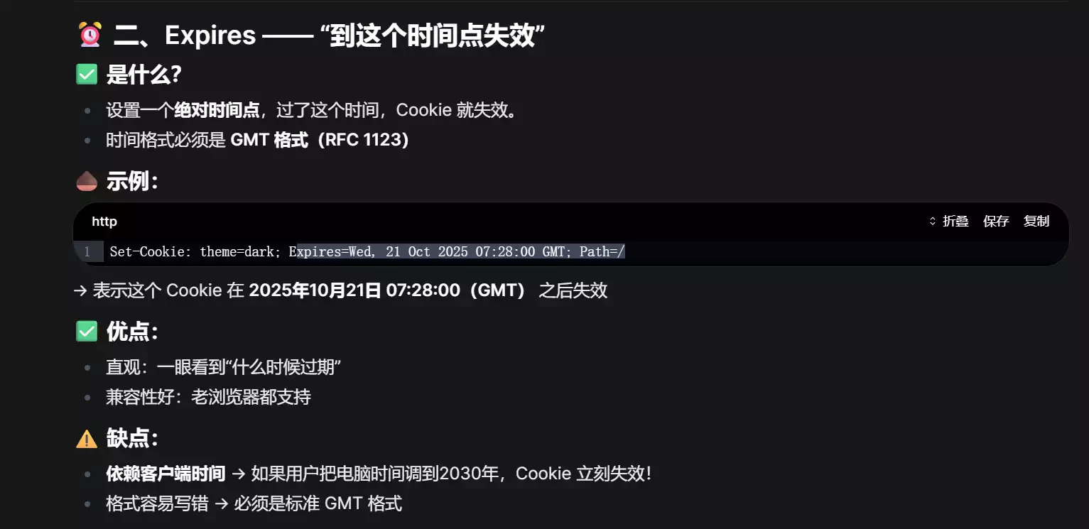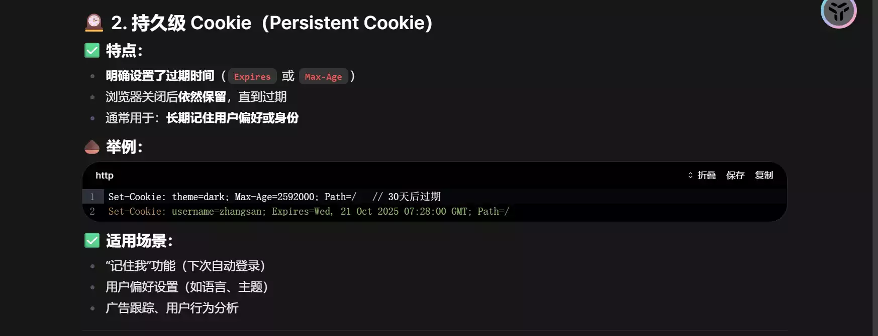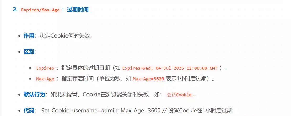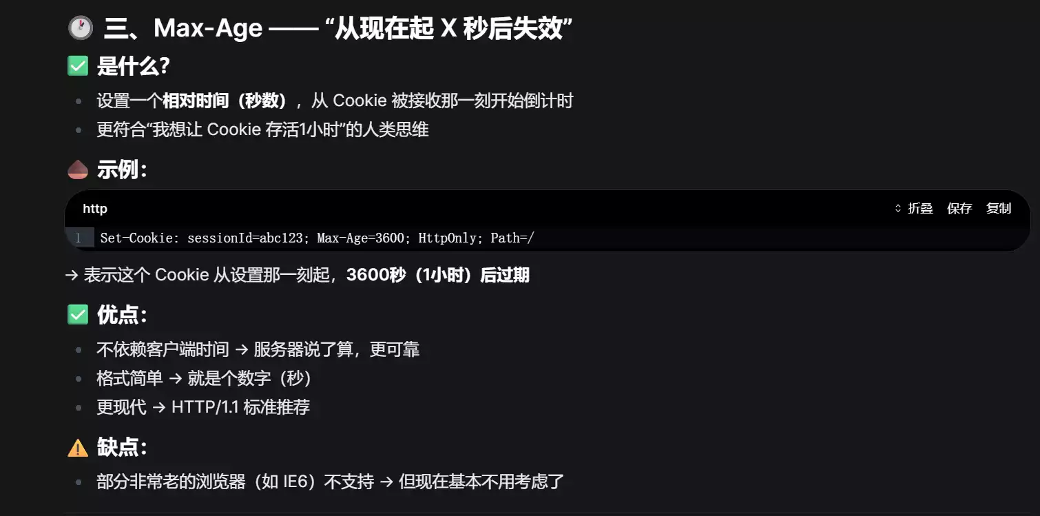两者都用于设置“持久级 Cookie”(会话级 Cookie 不设置它们) 同时存在时,Max-Age 优先