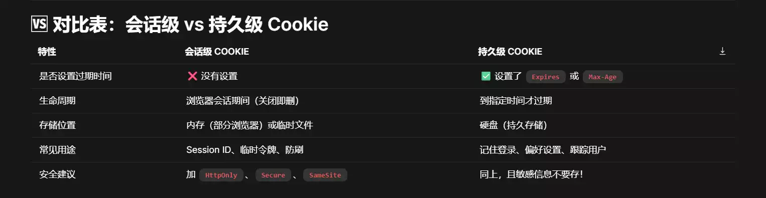 永远不要在Cookie中存储敏感信息(如密码),改用Token或Session ID。 始终启用HttpOnly和Secure,防止XSS和中间人攻击。