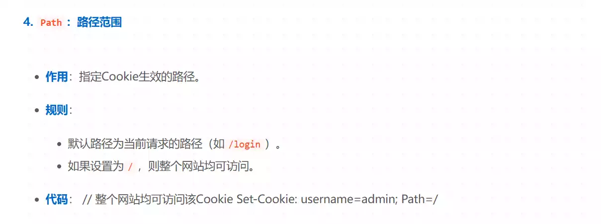 字段: 服务器通过这个字段定义Cookie的内容Path=/
