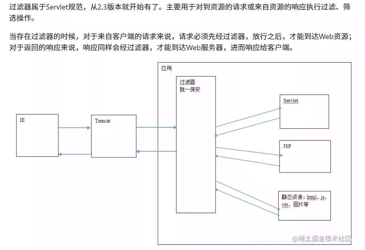可以过滤所有的请求,包括静态资源,jsp,html等,因为它在Servlet容器层面生效。