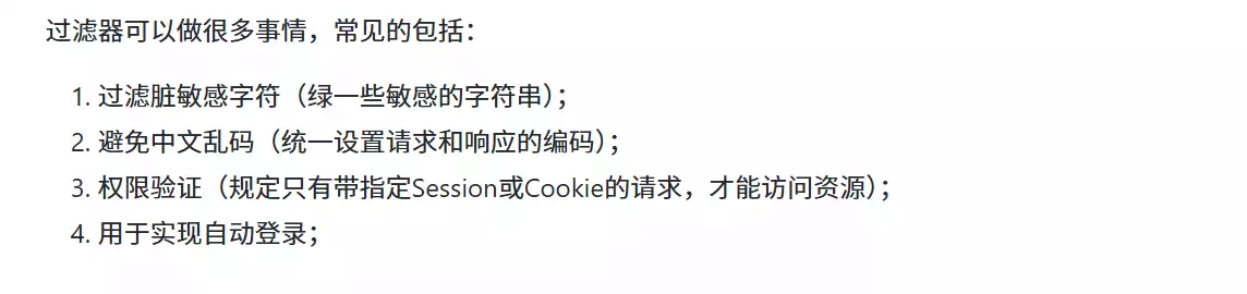 侧重于过滤请求和响应的内容,比如设置编码格式,安全控制等。