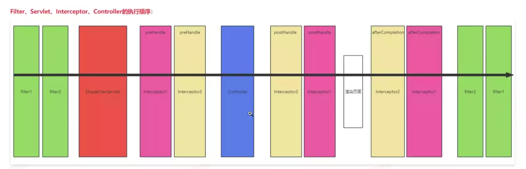 先于拦截器执行,因为过滤器作用于Servlet容器层面,拦截器作用在Spring MVC 的处理器映射器找到控制器前或者后执行。